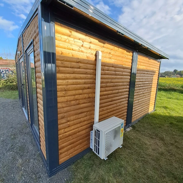 Isolation : mousse rigide de polyuréthane + revêtement en bois