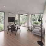 La maison est livrée clé en main. Elle dispose d’une salle de bain complète, d’une cuisine en option, d’une chambre séparée, d’un hall d’entrée, d’une ventilation, d’une climatisation avec fonction de chauffage, d’un chauffe-eau et d’un chauffage au sol infrarouge.