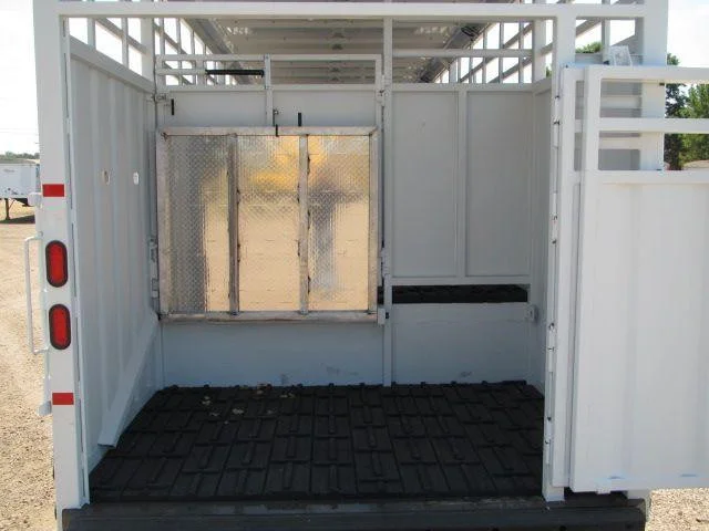 Remorque à bétail 2025 38’x102″ à chargement au sol, prête à travailler pour vous ! Peut contenir 800 livres par pied (38 à 800 lb pour les yearlings / 30 à 1000 lb pour les vaches), pont supérieur de 10′, pont principal de 22′, boîte arrière de 6′ avec rampe pleine largeur, porte de chargement arrière coulissante (capacité à s’ouvrir complètement), (4) feux intérieurs et (2) feux de recul arrière, (2) compartiments de 11″, (3) barrières de séparation, application Gator-Hyde à l’intérieur, plancher en caoutchouc à crampons avec nettoyages, suspension pneumatique avec soupape de décharge manuelle, 40 trous ovales perforés, pneus 255/70R22.5, roues en acier, 50 000 pnb, toit de remorque blanc, fond de remorque noir, barrières à loquet automatiques, palier à 2 vitesses, Largeur intérieure de 97 po, nettoyages de plancher, application Coreshield à l’intérieur, déflecteurs de nervures